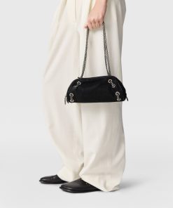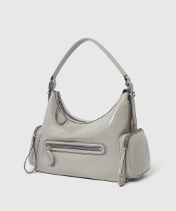 Stella McCartney Women’s Handbags Falabella Cracked Metallic Drawstring Crossbody Bag | Steel Gray