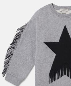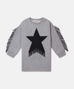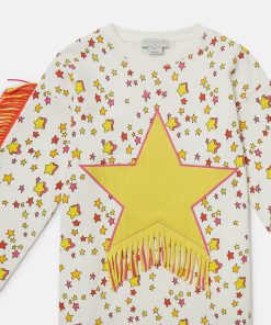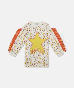 Stella McCartney Kid’s Girls (2–14 Years) Star Graphic Fringed Sweatshirt Dress | Ivory & Multicolor