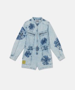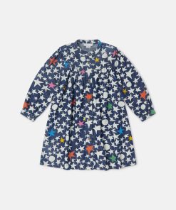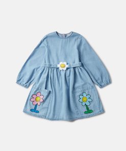 Stella McCartney Kid’s Girls (2–14 Years) Flower Graphic Buckle Long-sleeve Dress | Azure Blue