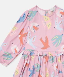 Stella McCartney Kid’s Girls (2–14 Years) Dove Print Long-sleeve Dress | Violet & Multicolor