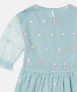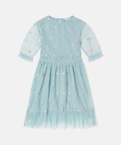 Stella McCartney Kid’s Girls (2–14 Years) Heart Embroidered Long-sleeve Dress | Gray & Multicolor