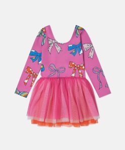 Stella McCartney Kid’s Girls (2–14 Years) Bow Print Layered Tulle Dress | Fuchsia & Multicolor