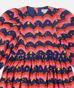 Stella McCartney Kid’s Girls (2–14 Years) Wavy Print Long-sleeve Dress | Blue & Multicolor