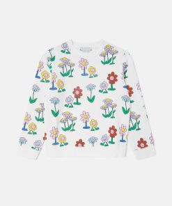 Stella McCartney Kid’s Girls (2–14 Years) Flower Print Crewneck Sweatshirt | Ivory & Multicolor
