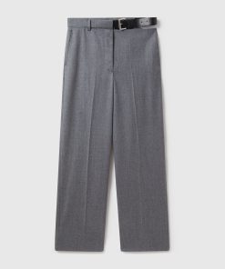 Stella McCartney Women’s Ready To Wear Belted Flannel Straight-leg Pants | Gray Melange