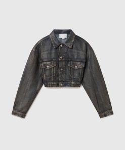 Stella McCartney Women’s Ready To Wear Aged Paneled Cropped Denim Jacket | Aged Blue