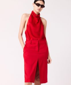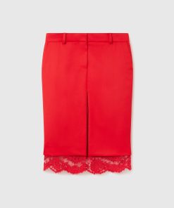 Stella McCartney Women’s Ready To Wear Laced Sleeves Cableknit Turtleneck Sweater | Red & Grey