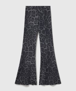 Stella McCartney Women’s Ready To Wear Leopard-print Mid-rise Flared Pants | Ash Grey