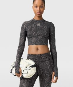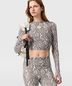Stella McCartney Women’s Adidas Truepurpose Training Snake Print Long-sleeve Cropped Top | Beige