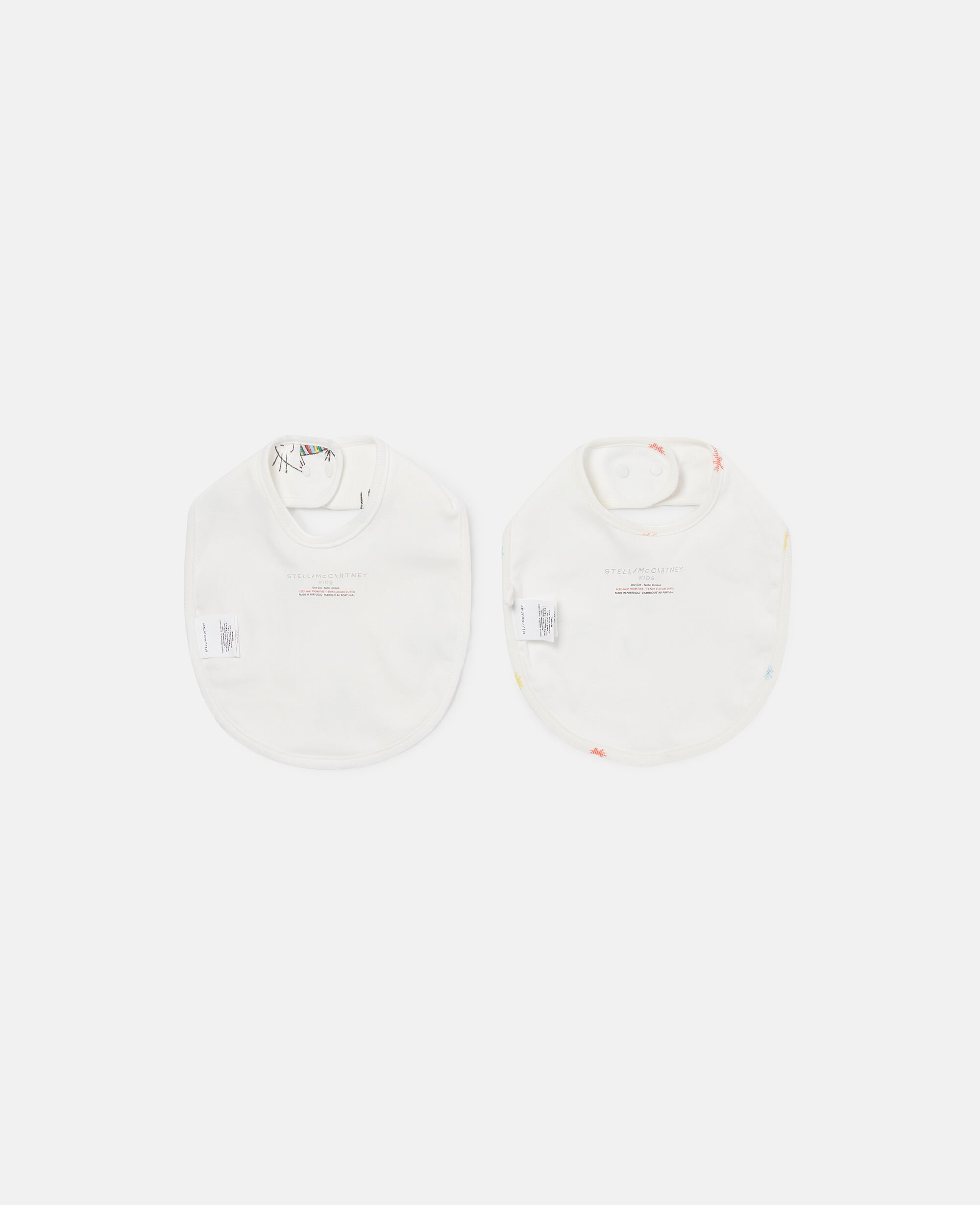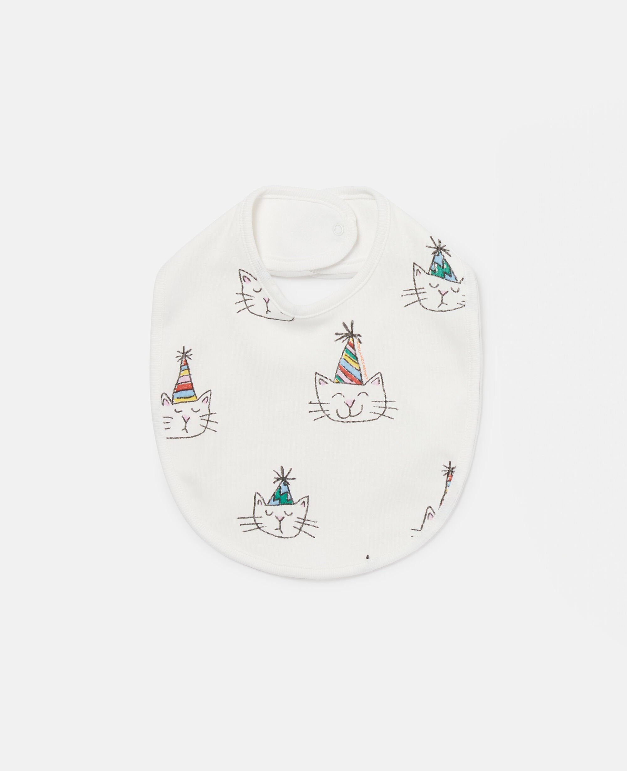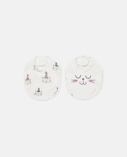 The Stella Kids Spring Summer 2025 collection playfully shows the next generation that animals are friends, not fashion. The season’s funny, feline face is printed on these soft, organic cotton bibs.