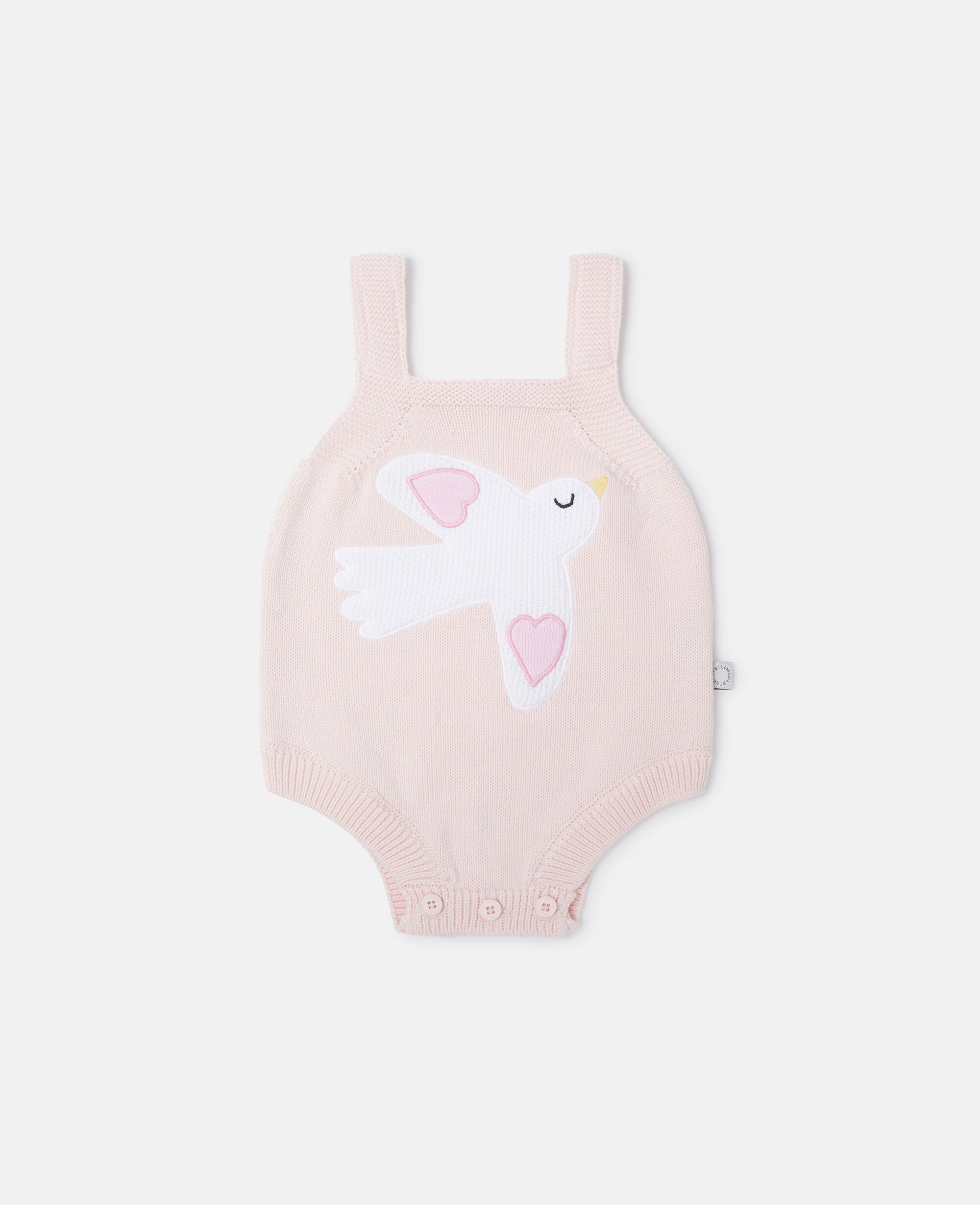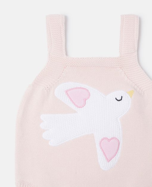 A love for animals can take wing at any age. This soft, organic cotton romper is embroidered with a soaring dove – a symbol of peace and a continuation of Stella McCartney’s avian-inspired Summer 2025 collection. Pair it with the coordinating bibs from our latest sustainable luxury childrenswear edit.