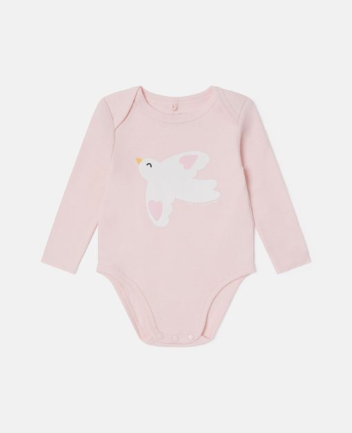 A love for animals can take wing at any age. These soft, organic cotton rompers are printed with soaring doves – a symbol of peace and a continuation of Stella McCartney’s avian-inspired Summer 2025 collection. Pair them with the coordinating bibs from our latest sustainable luxury childrenswear edit.