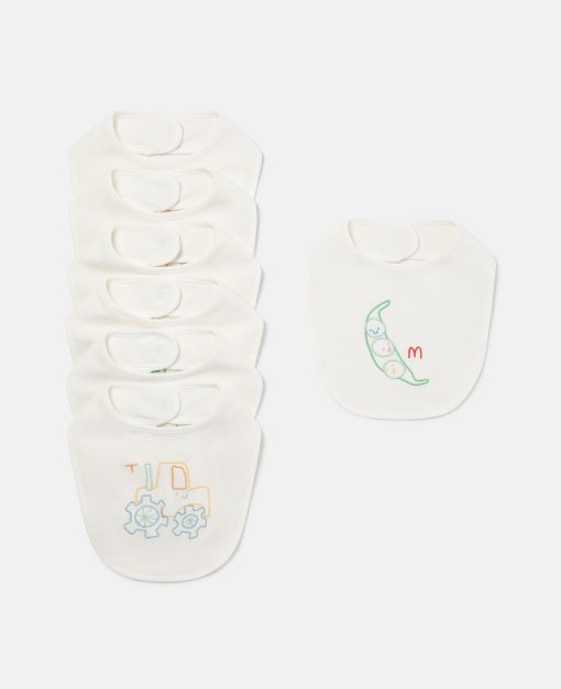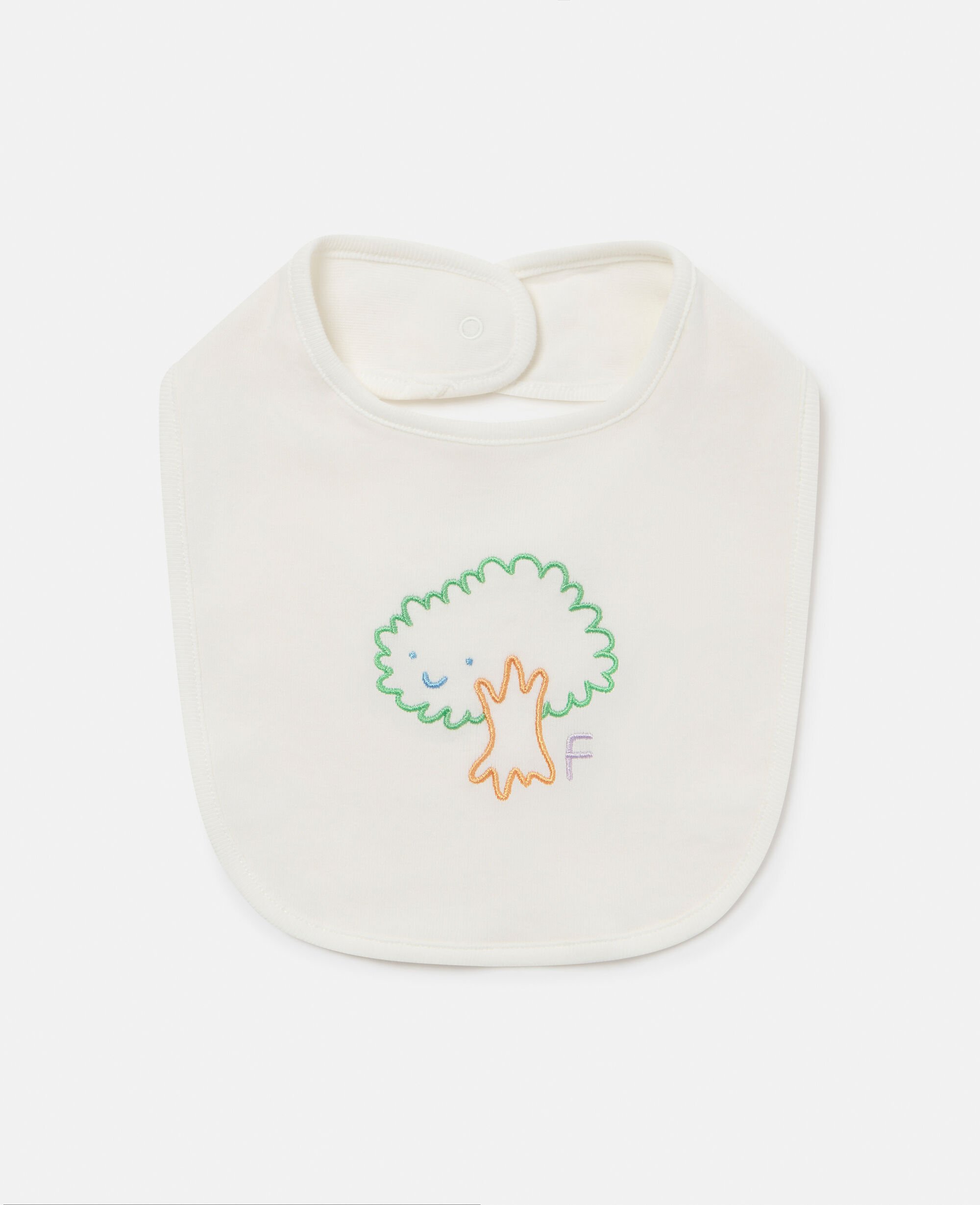 Nature is playfully celebrated in every Stella Kids collection, with Spring Summer 2025 made from 96% conscious materials kinder to Mother Earth. These bibs are crafted with organic cotton and embroidered with plants, animals and vegetables.