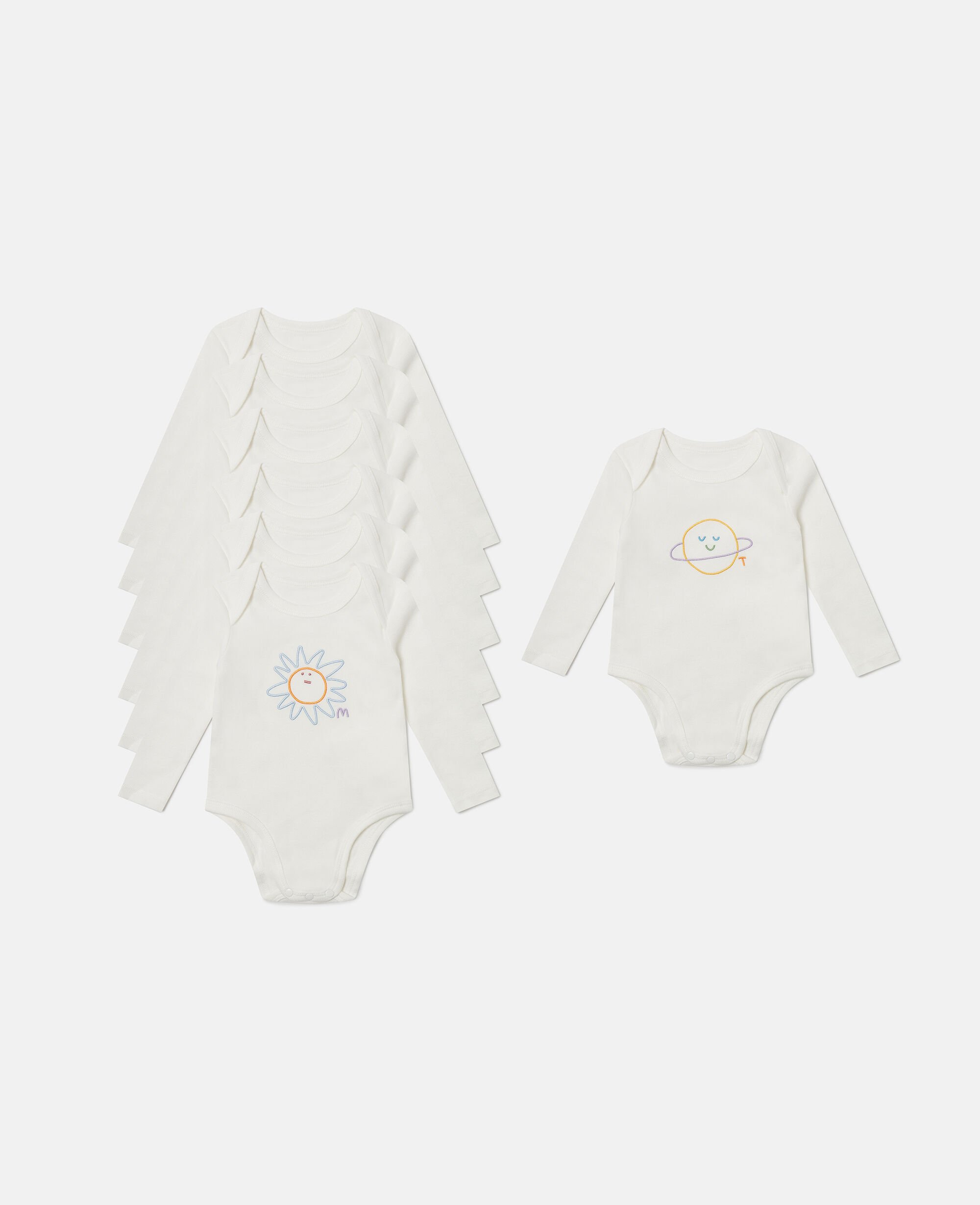 Playful patterns and prints are a Stella McCartney Kids signature. Beaming joy in our latest sustainable luxury childrenswear collection, these rompers are crafted from super soft organic cotton with planetary characters embroidered on the front – both a Stella Kids fashion statement and staple.