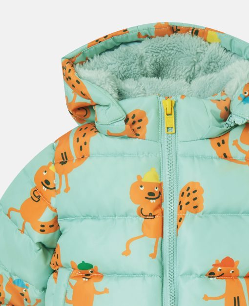 Animals are friends, not fashion! Our latest Stella Kids sustainable luxury childrenswear collection includes chummy, cheeky squirrel faces printed on this puffer coat, made from insulating recycled materials. Pair it with the coordinating sweatpants.