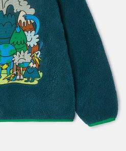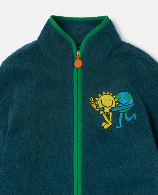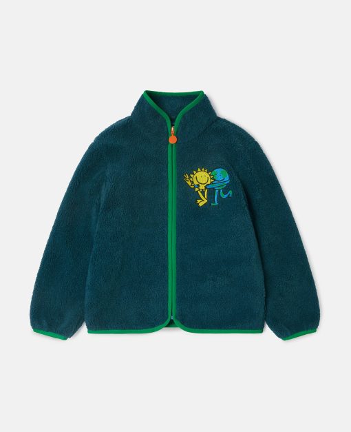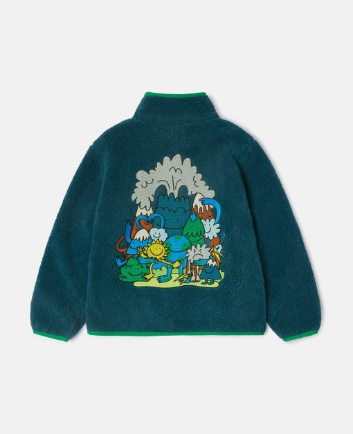 This fleece is made from recycled polyester. For Fall/Winter 2025, Stella McCartney Kids is inspired by the love we have for our one shared home – Mother Earth. Smiling flowers, hearts and other earthy friends beam across a collection crafted from 96% conscious materials.