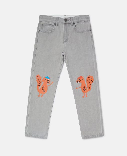 Animals are friends, not fashion! Our latest Stella Kids sustainable luxury childrenswear collection includes chummy, cheeky squirrel faces printed on these organic cotton denim jeans. Pair them with the coordinating shirt.
