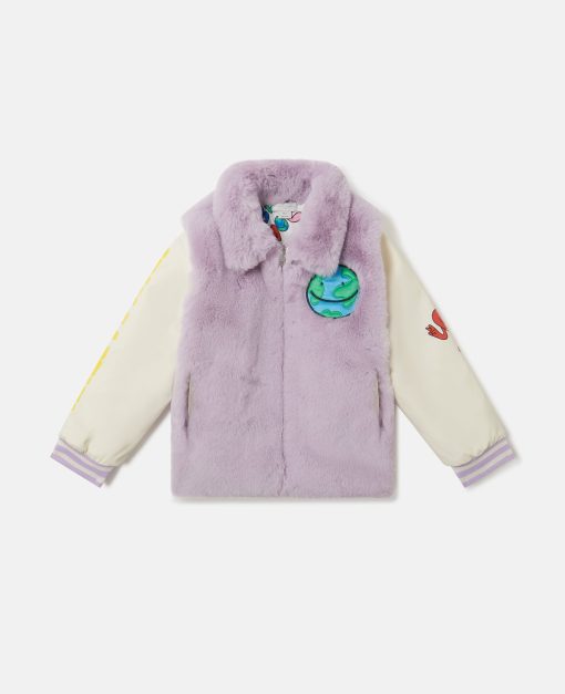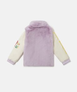 This teddy jacket is made from recycled polyester. For Fall/Winter 2025, Stella McCartney Kids is inspired by the love we have for our one shared home – Mother Earth. Smiling flowers, hearts and other earthy friends beam across a collection crafted from 96% conscious materials.