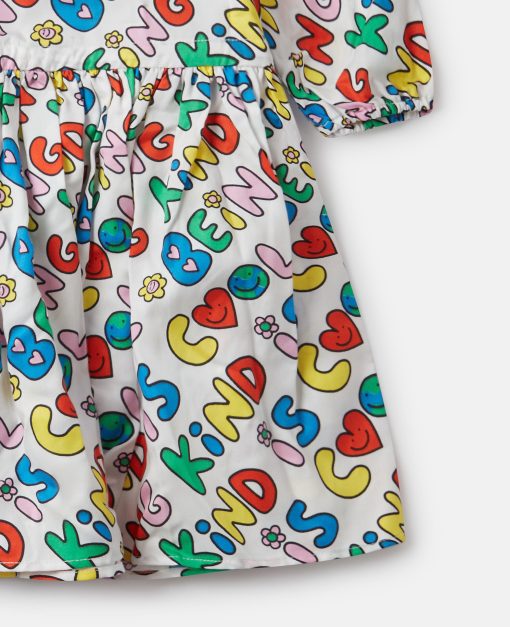 This dress is made from a soft forest-friendly-blend viscose jersey. For Fall/Winter 2025, Stella McCartney Kids is inspired by the love we have for our one shared home – Mother Earth. Smiling flowers, hearts and other earthy friends beam across a collection crafted from 96% conscious materials.