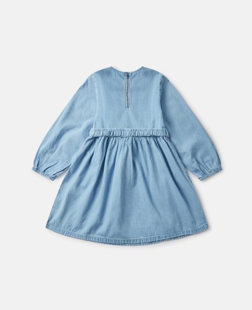 This long-sleeve dress is made from soft organic cotton denim. For Fall/Winter 2025, Stella McCartney Kids is inspired by the love we have for our one shared home – Mother Earth. Smiling flowers, hearts and other earthy friends beam across a collection crafted from 96% conscious materials.