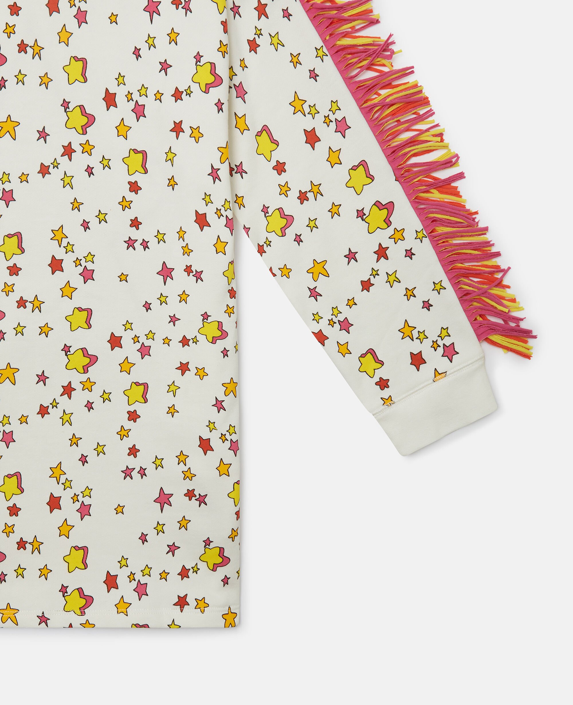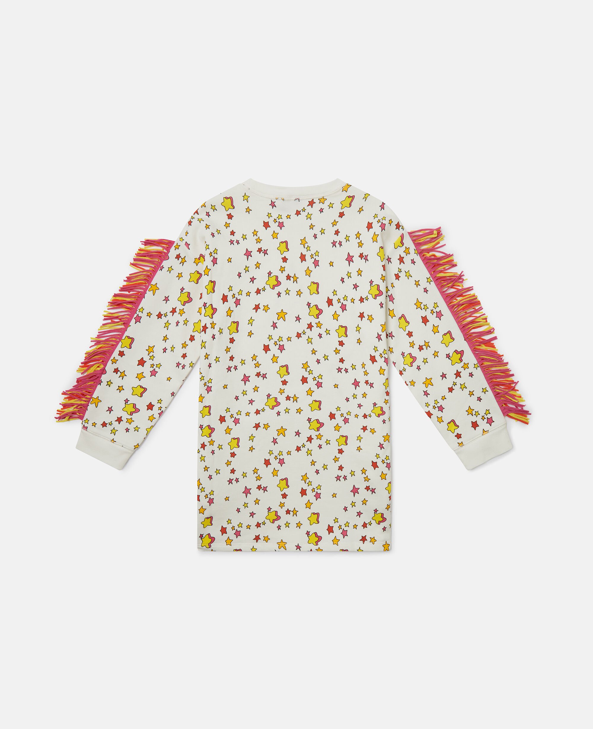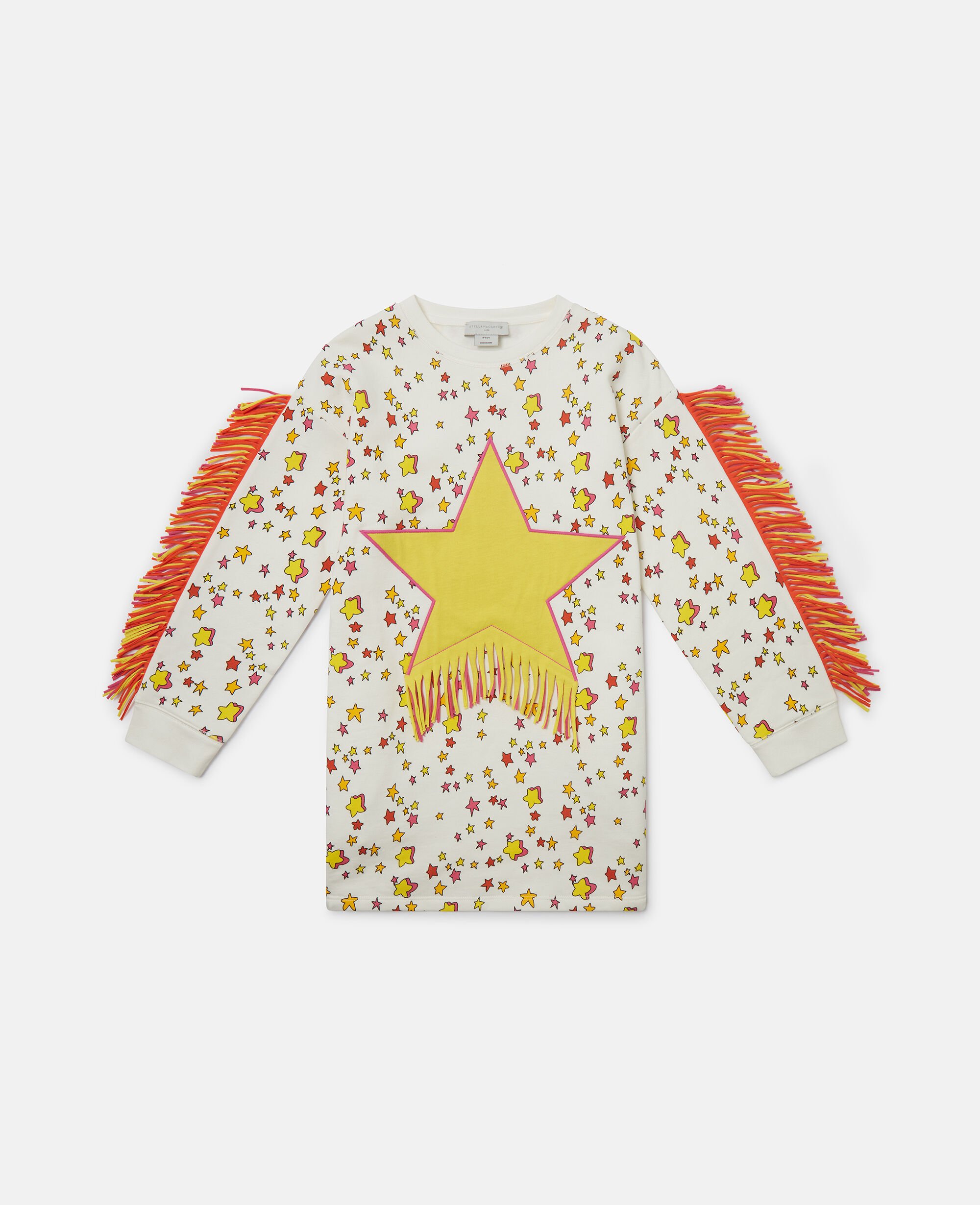 Playful patterns and prints are a Stella McCartney Kids signature. Beaming joy in our latest sustainable luxury childrenswear collection, this dress is crafted from super soft organic cotton with a star printed on the front. Topped with fringing, it is both a Stella Kids fashion statement and staple.