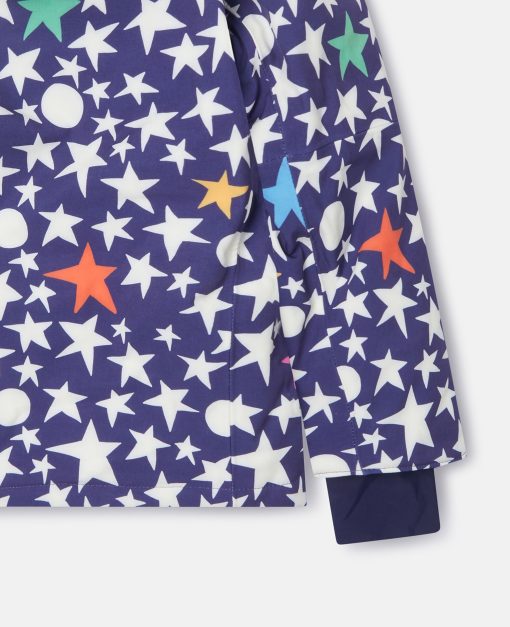 Our new Stella McCartney Kids sustainable luxury childrenswear skiwear edit is made for adventures in the snow and on the go. This jacket is crafted from insulating, wind-proofed and waterproofed panels of recycled materials to help them stay warm and stay outside. Finished with star pattern, hood and cushioning fit, pair this slalom staple with the coordinating salopettes.