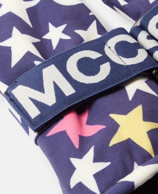 Our new Stella McCartney Kids sustainable luxury childrenswear skiwear edit is made for adventures in the snow and on the go. These gloves are crafted from insulating, wind-proofed and waterproofed panels of recycled materials to help them stay warm and stay outside. Finished with a star pattern and cushioning fit, pair these slalom staples with the coordinating salopettes.