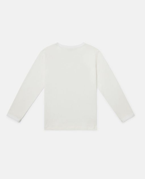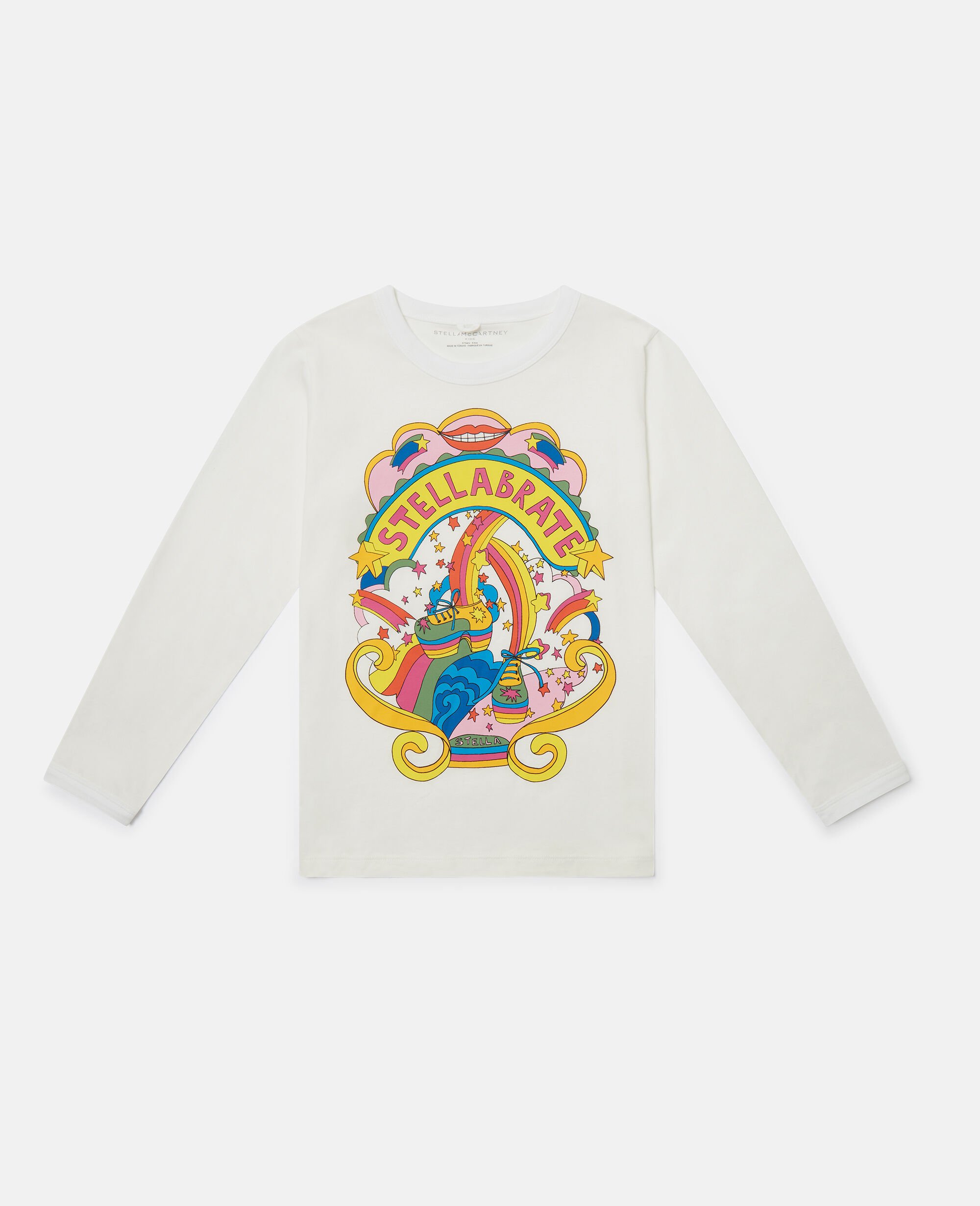 Playful patterns and prints are a Stella McCartney Kids signature. Beaming joy in our latest sustainable luxury childrenswear collection, this long-sleeve top is crafted from super soft organic cotton with a Stellabration graphic on the front. Topped with a classic crewneck, it is both a Stella Kids fashion statement and staple.
