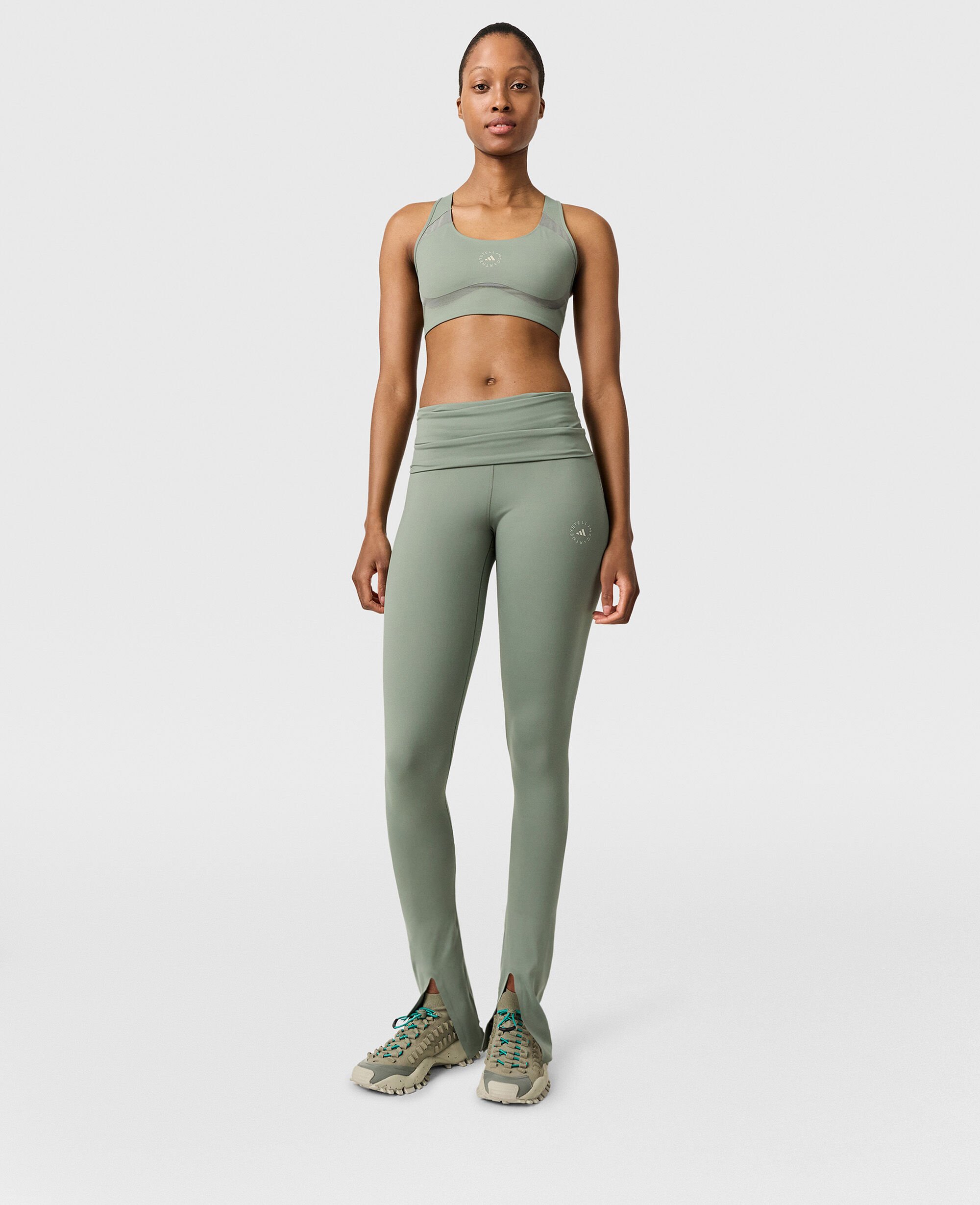 Embrace a new season of wellness goals with these adidas by Stella McCartney TrueStrength yoga leggings. The leggings have a soft handfeel and feature flattering decorative cutlines that wrap around the front for comfort during floor exercises.