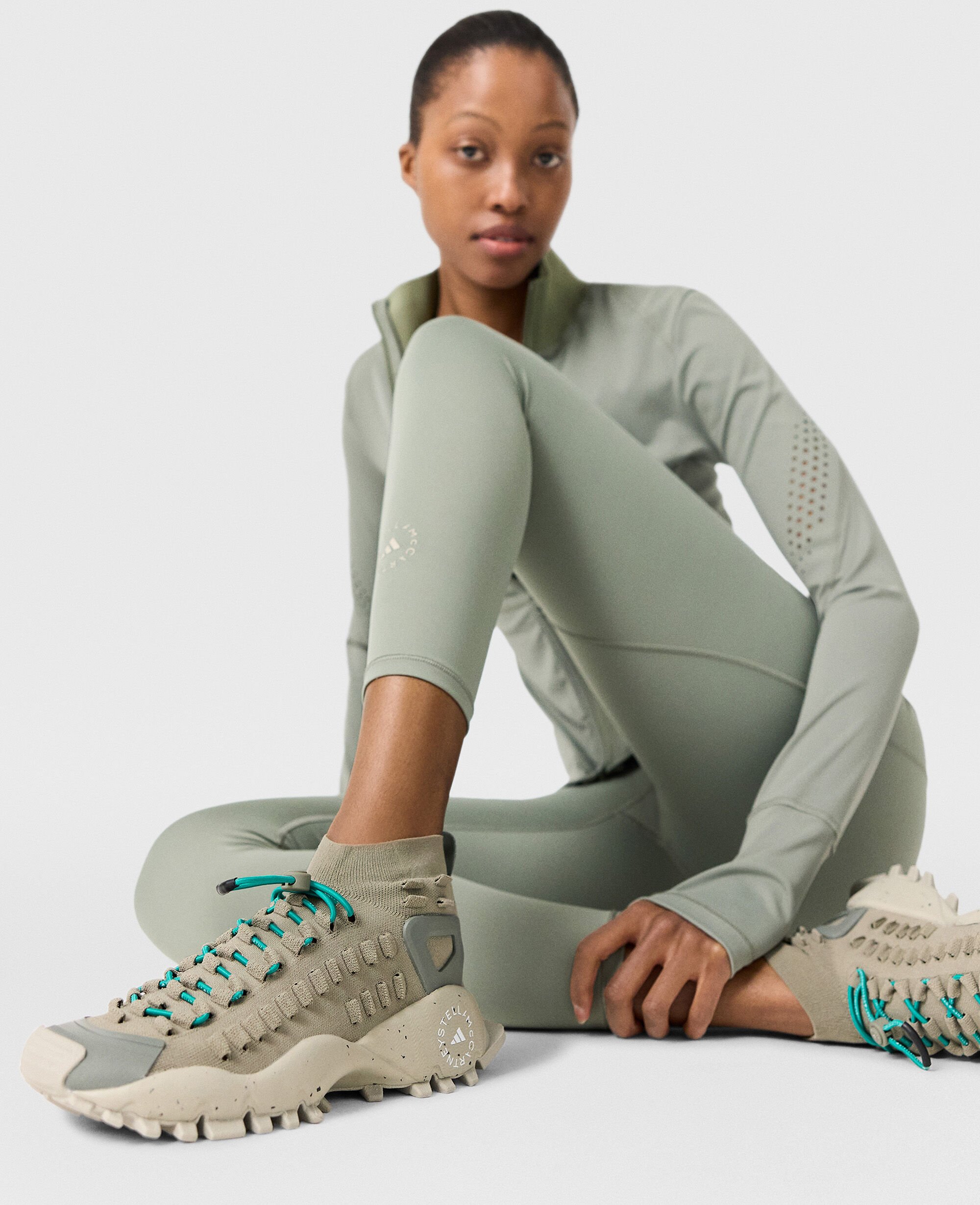 With a cleated sole and striking design, these adidas by Stella McCartney Seeulater 2 hiking sneakers reach new heights of sport and style. The sneakers are crafted with a water-repellent adidas Primeblue woven textile upper made with recycled materials.