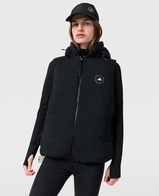 Build your outdoors gym kit with this high-neck padded jacket from adidas by Stella McCartney. Made from recycled materials, including its vegan synthetic down padding, it is primed with WIND.RDY technology to block out wind and rain – making this layer perfectly equipped for activities in nature.