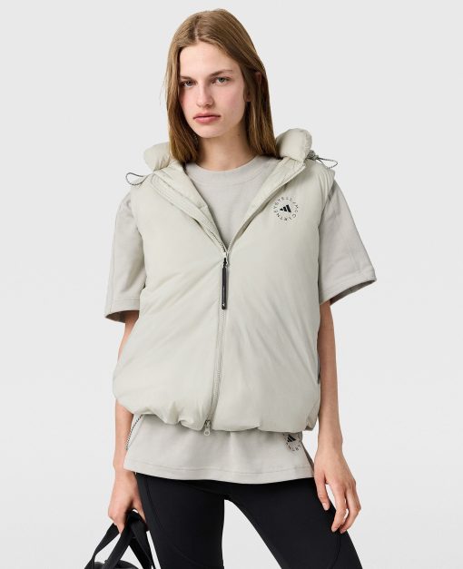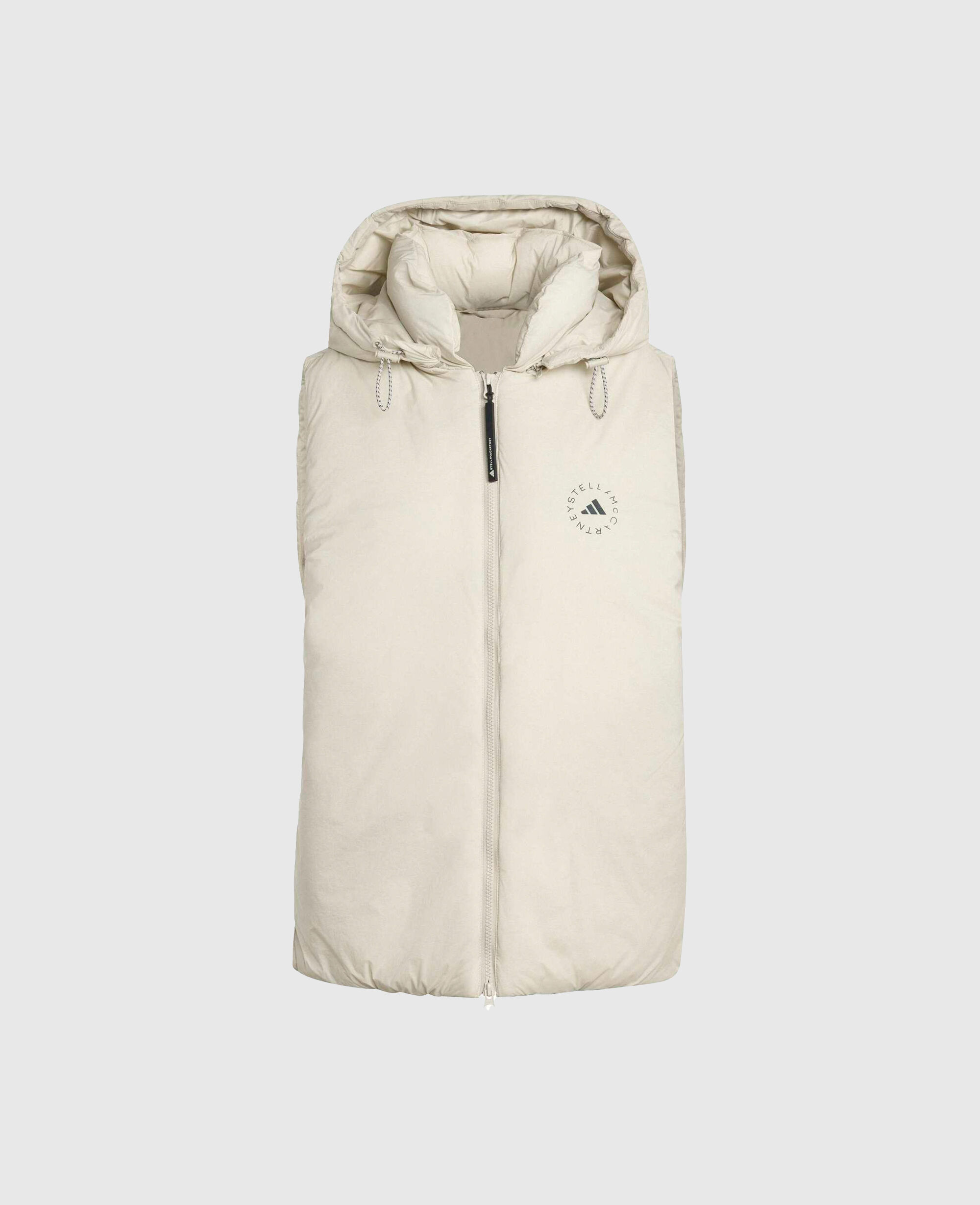 Build your outdoors gym kit with this high-neck padded vest from adidas by Stella McCartney. Made from recycled materials, including its vegan synthetic down padding, it is primed with WIND.RDY technology to block out wind and rain – making this layer perfectly equipped for activities in nature.