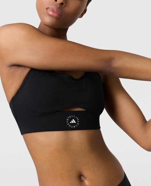 Practice sun salutations and beyond in this adidas by Stella McCartney TrueStrength sports bra. Stylish and sleek, it offers medium-impact support perfect for yoga and Pilates. The sports bra has removable padding, a cut-out at the front and is finished with logo prints at the underband.