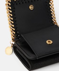 The natural companion to our iconic Falabella tote bag, this Falabella flap wallet is carefully considered from its pocket organisation to its cruelty-free vegan ‘Shaggy Deer’ fabric. This black cream purse includes room for notes, pocket change and up to six credit cards.