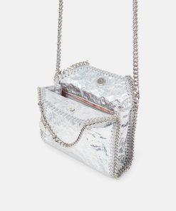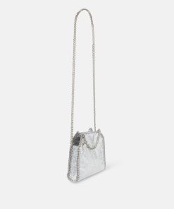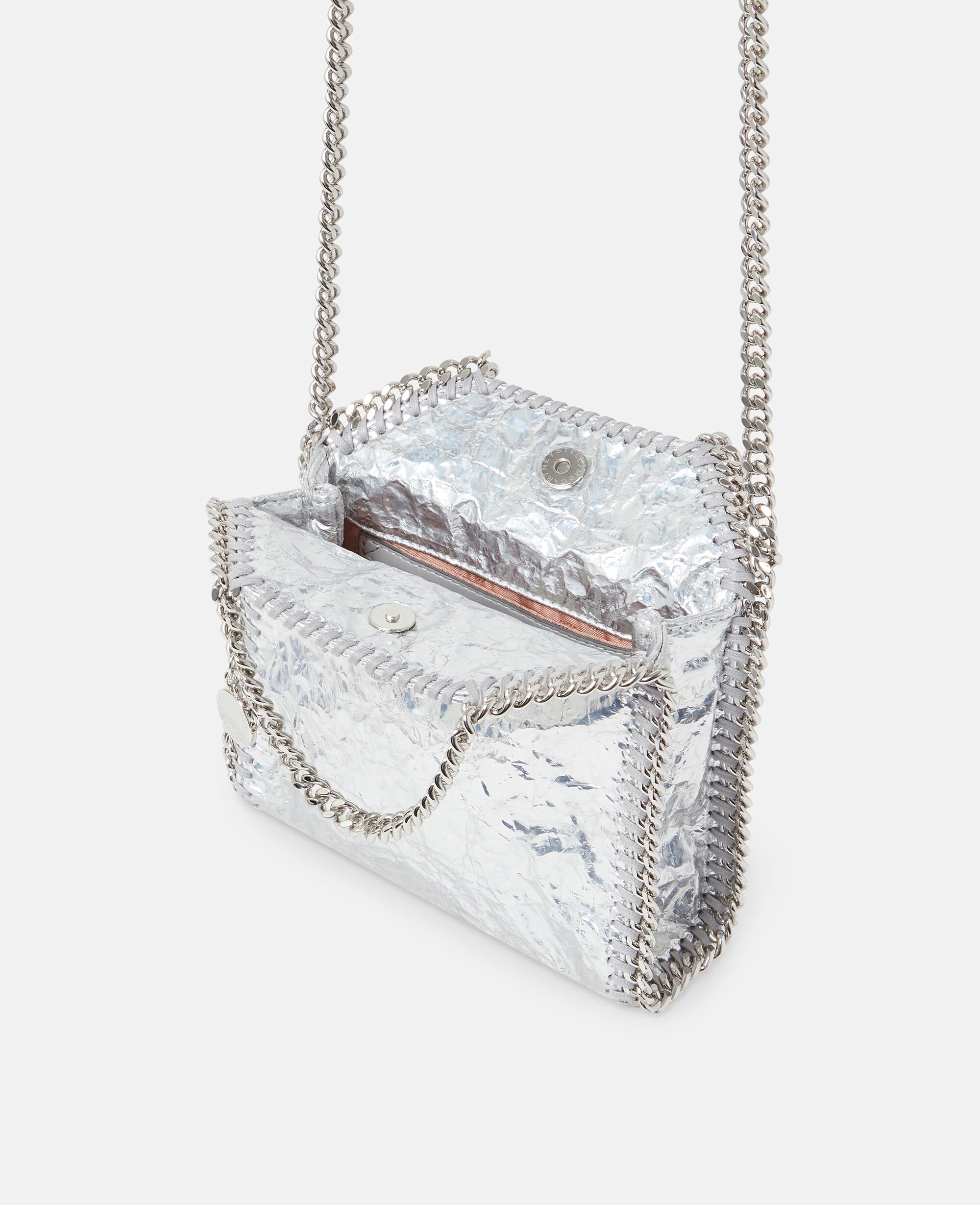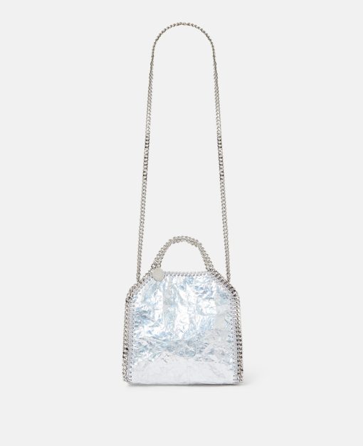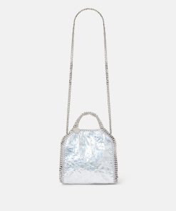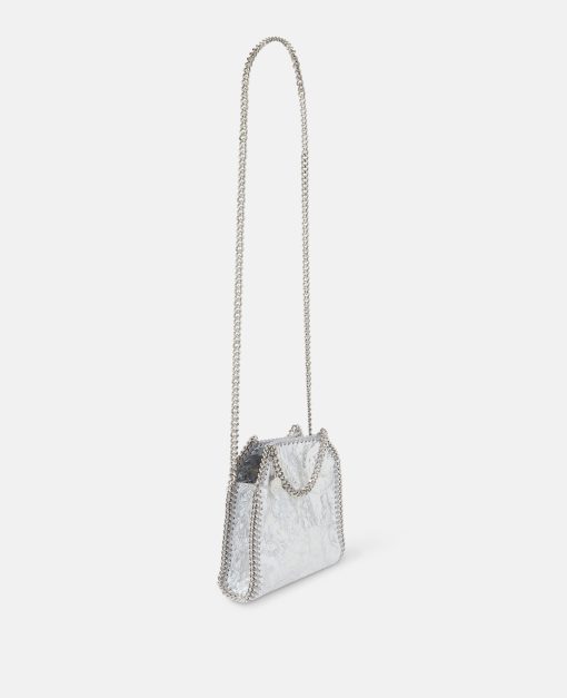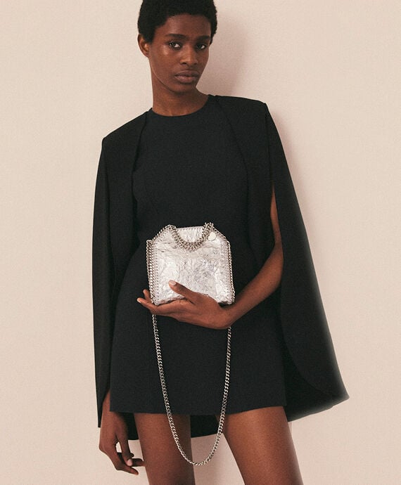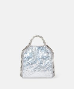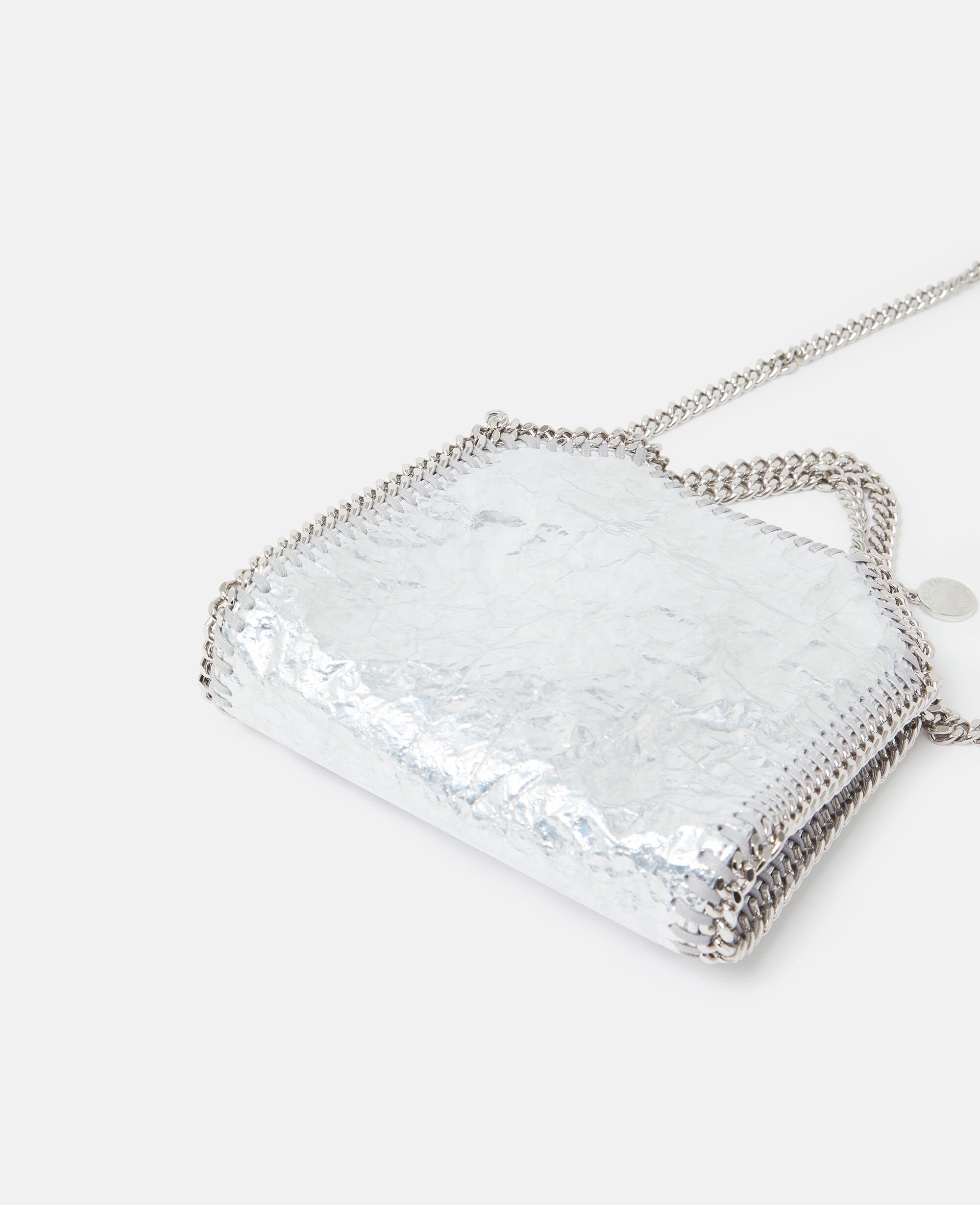 Consciously crafted from our buttery soft, vegan alternative to animal leather with a cracked, metallic silver finish, this Falabella tote bag is one of our most coveted vegan icons. Characterised by its hand-laced, heavyweight diamond-cut chain outline and handles, stow away your phone as well as daily necessities.
