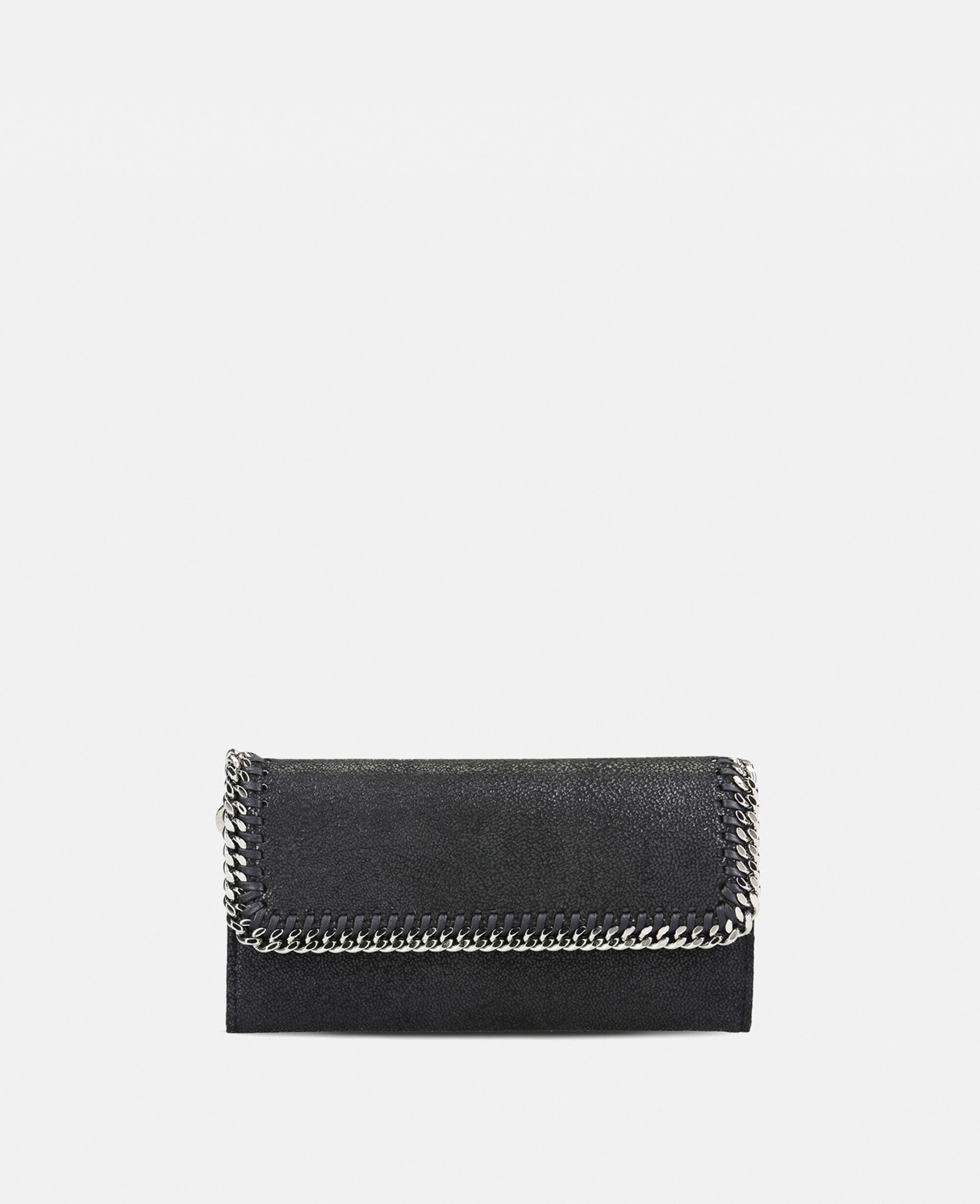 The Falabella continental wallet is an elevated way to keep cash and cards organised. Consciously crafted from grainy Shaggy Deer fabric, this vegan purse is framed by an iconic aluminium diamond-cut chain and is divided into practical slots and pockets.