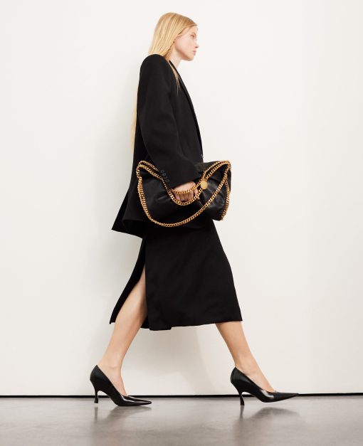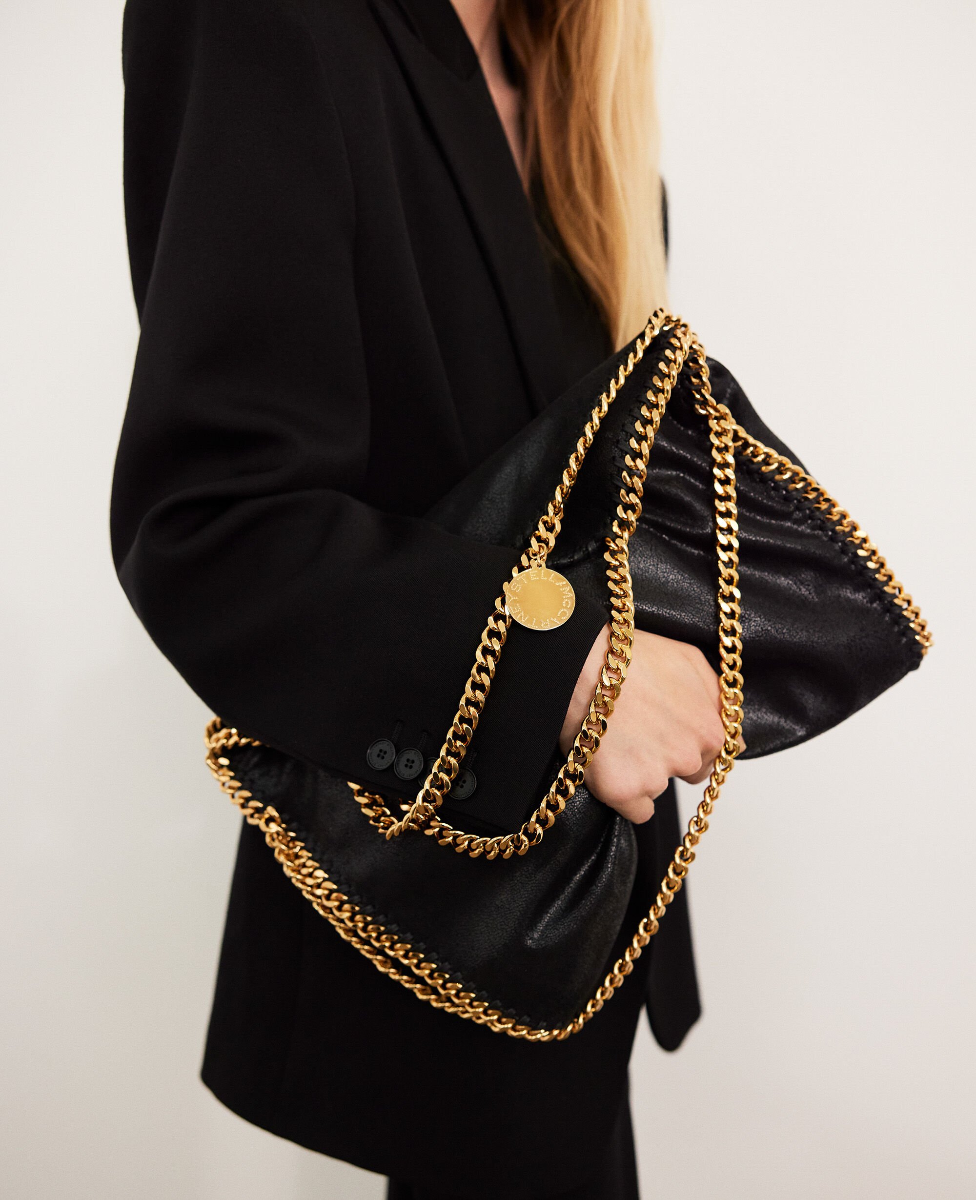 Framed by our signature diamond-cut chain, this Falabella fold-over tote bag is a vegan icon. The bag is consciously crafted from our grained matte Shaggy Deer fabric, specially treated with a semi-gloss sheen. This tote can be worn two ways, folded over as a shoulder bag or as a handheld tote.