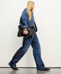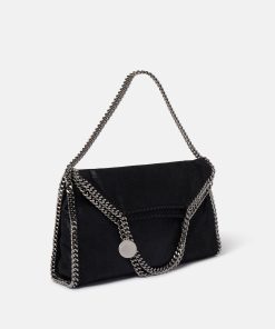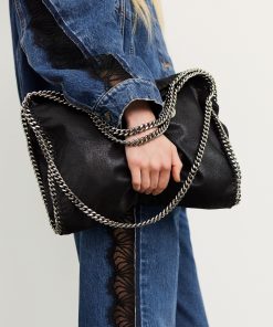 Reenergising the time-honoured black bag, this Falabella fold-over tote bag is an adaptable wear-anytime choice. Crafted from grained vegan Shaggy Deer fabric with an iconic Falabella chain framing its edges in silver, the tote bag is finished with a logo-printed lining made from recycled plastic bottles and can be worn in two ways.