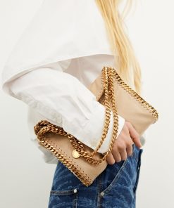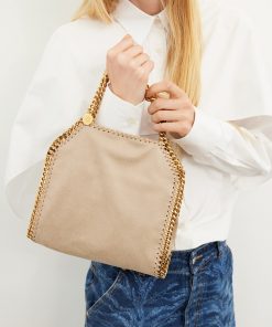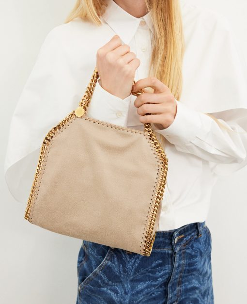 A compact version of our iconic design, the Falabella mini tote bag has just enough room to carry your daily essentials. Consciously crafted from grained vegan Shaggy Deer fabric, the slouchy tote has a gold-coloured recycled brass and aluminium chain that characterises our Falabella. The butter cream tone makes it infinitely wearable for your favourite looks.