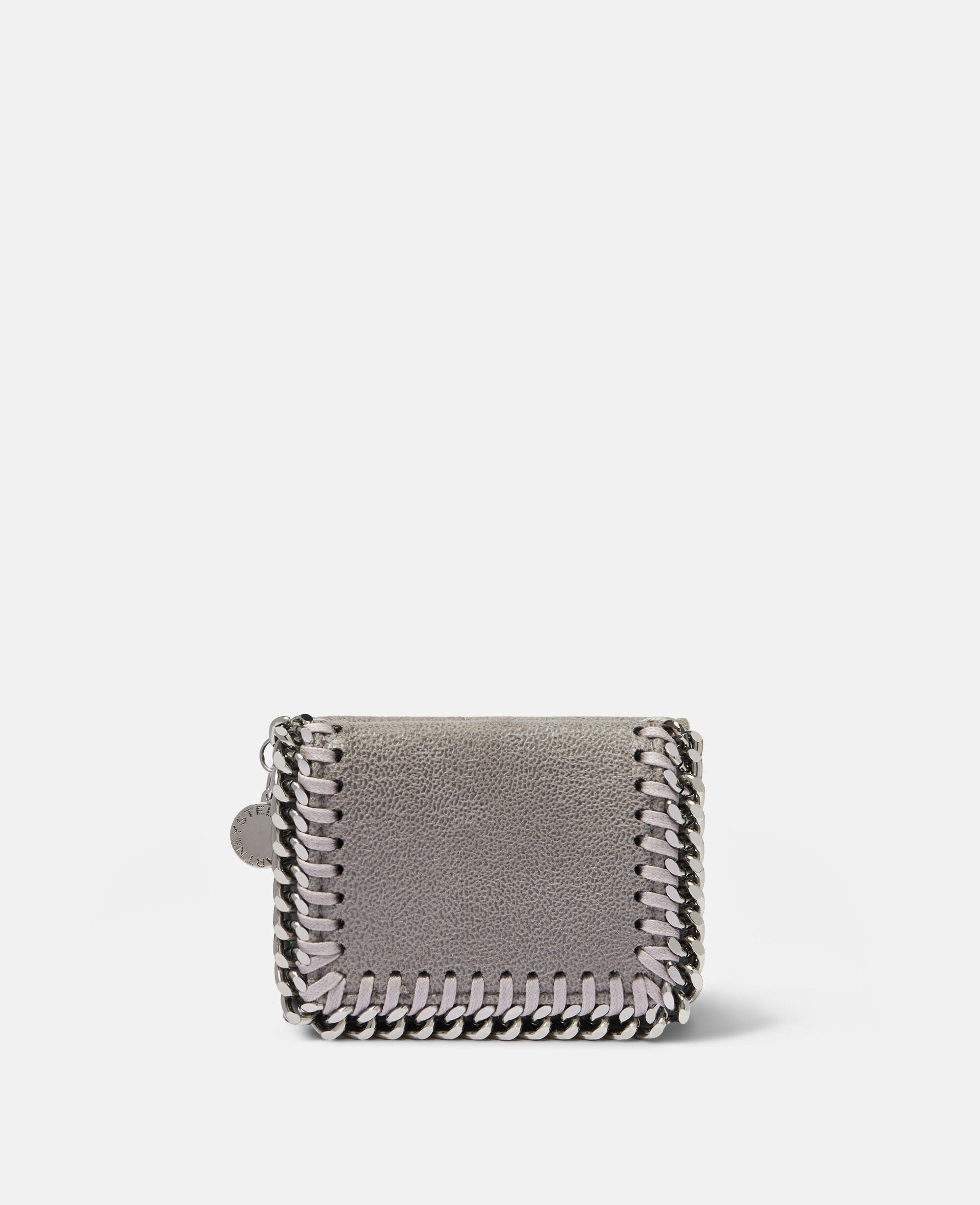 The natural companion to our iconic Falabella tote bag, this Falabella flap wallet is carefully considered from its pocket organisation to its cruelty-free vegan ‘Shaggy Deer’ fabric. This small grey purse includes room for notes, pocket change and up to six credit cards.