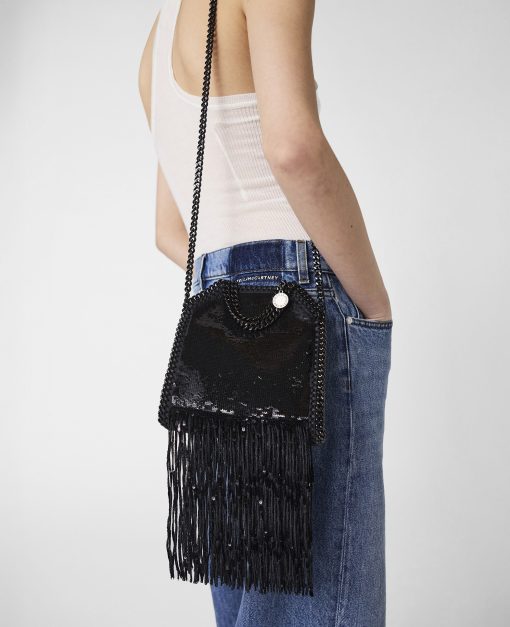 This limited-edition Falabella bag is part of an exclusive capsule, celebrating and elevating our icon’s legacy of cruelty-free craft. Made in Italy, PVC-free sequins and fringe are hand-placed – inspired by our vegan luxury bag’s rock ‘n’ roll heritage and attitude. This immediately recognizable Stella McCartney bag can carry your phone, wallet and lipstick inside.