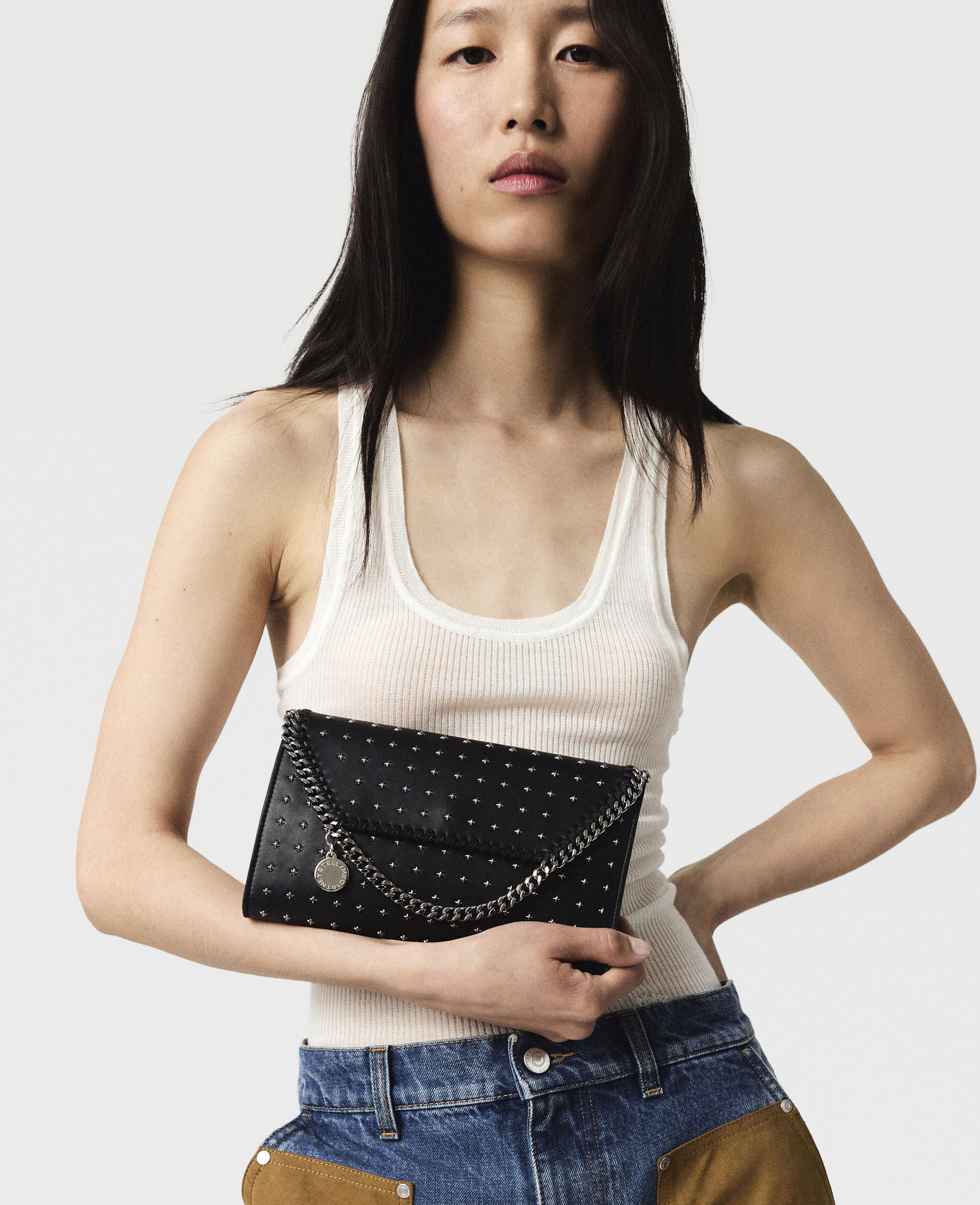 This limited-edition Falabella crossbody bag is part of an exclusive capsule, celebrating and elevating our icon’s legacy of cruelty-free craft. Made in Italy, all-over silver star studs are hand-placed – inspired by our vegan luxury bag’s rock ‘n’ roll heritage and attitude. This immediately recognizable Stella McCartney bag is sculpted from mycelium-based YATAY M innovations and can carry your phone, keys and lipstick.