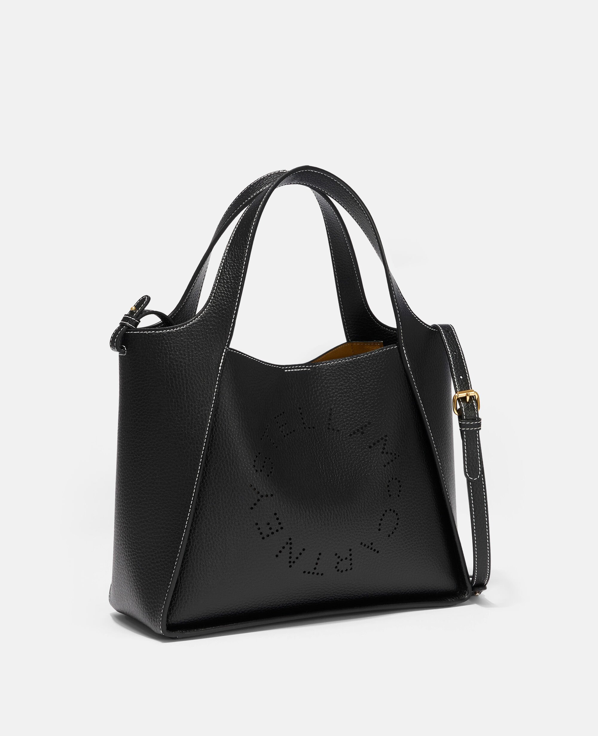 This Logo crossbody bag is a practical choice for city-to-country wear, crafted from our Alter Mat vegan alternative to animal leather with an embossed grain finish. With two top handles and an adjustable crossbody strap, the bag is finished with a perforated Stella McCartney circular logo and a handy buttoned pouch inside to keep smaller belongings organised.