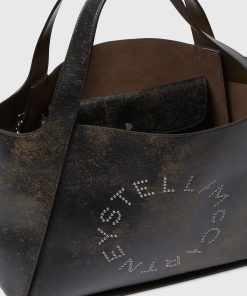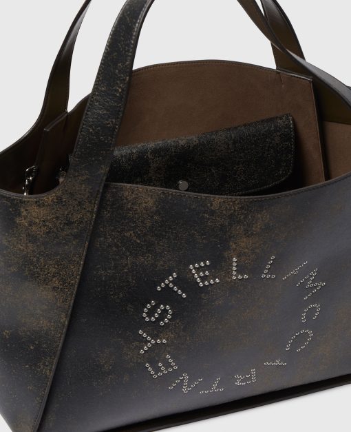 The Stella Logo tote bag is characterized by a timeless slouchy yet structured silhouette. Crafted in Italy from our luxury vegan alternative to leather with an aged finish, the bag has an eyelet-studded, circular logo at the front and can be carried by hand or over the shoulder. Store your laptop in the spacious main compartment, while the detachable pouch means essentials are never out of reach.