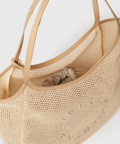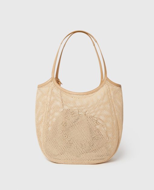 This contemporary rendition of our classic hobo tote becomes a new day-to-day essential in mesh. Handwoven from recycled materials and trimmed with our vegan alternative to animal leather with an aged finish, it’s embroidered with a circular Stella McCartney logo and hangs two shoulder straps. Generously sized, there’s room for your laptop, phone and other daily essentials inside.