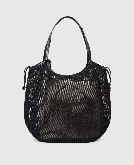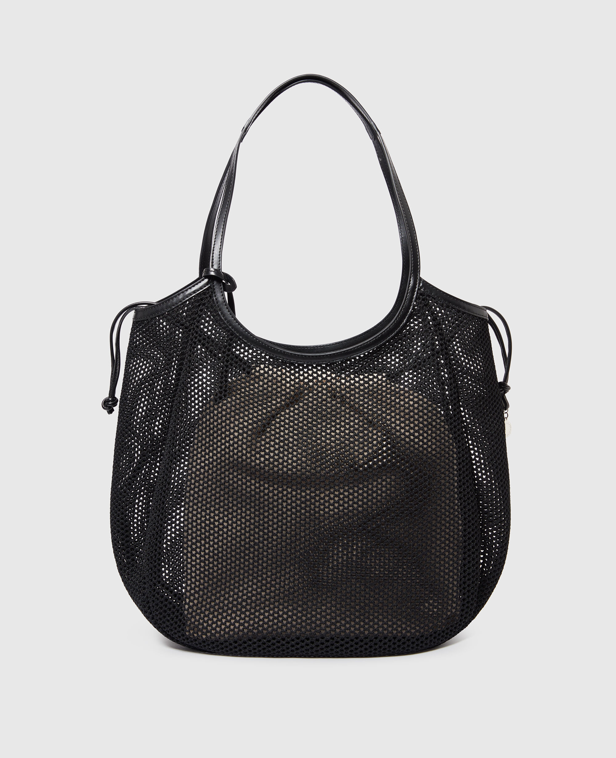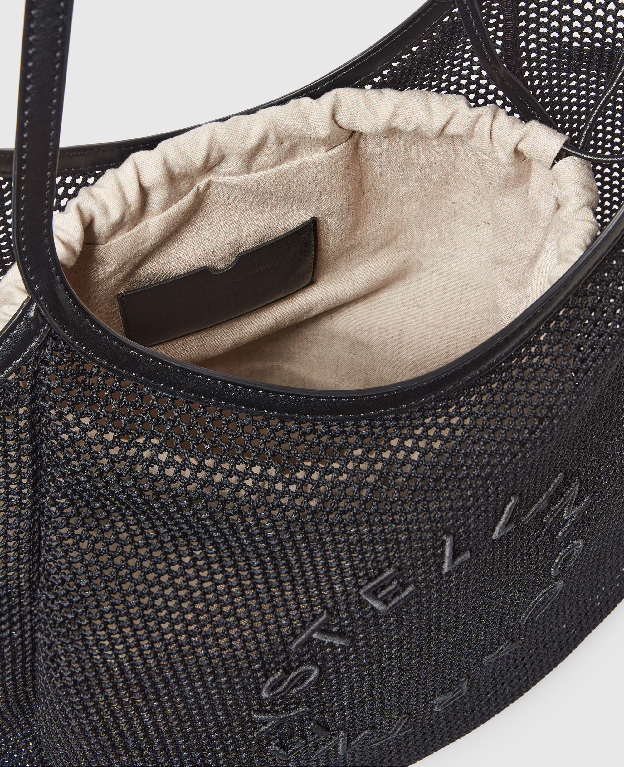 This contemporary rendition of our classic hobo tote becomes a new day-to-day essential in mesh. Handwoven from recycled materials and trimmed with our vegan alternative to animal leather with an aged finish, it’s embroidered with a circular Stella McCartney logo and hangs two shoulder straps. Generously sized, there’s room for your laptop, phone and other daily essentials inside.