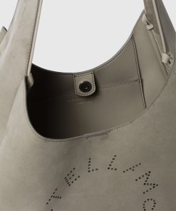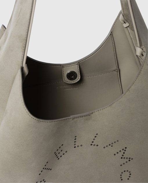This slouchy, oversized rendition of our classic hobo tote is your new day-to-day essential. Carved from our vegan alternative to suede, it’s perforated with a circular Stella McCartney logo and hangs from a single shoulder strap. Generously sized, there’s room for your laptop, phone and other daily essentials inside.