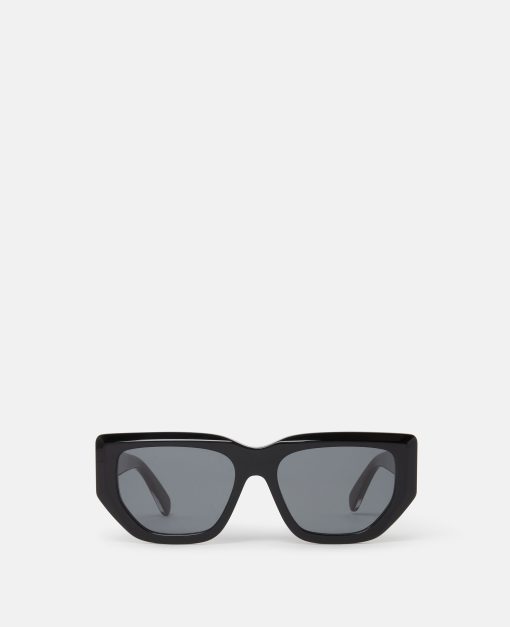 - Color: Glossy black and goldStyle: Oversized SquareFront/TempleLens: Solid graySize: 57cm Net Weight: 50gLens Category: 3 Lens Transmittance: 16.53%Stella McCartney logo on armsAll of our eyewear comes with a protective Alter Croc case, recycled polyester cleaning cloth and leaflet crafted from recycled paper.