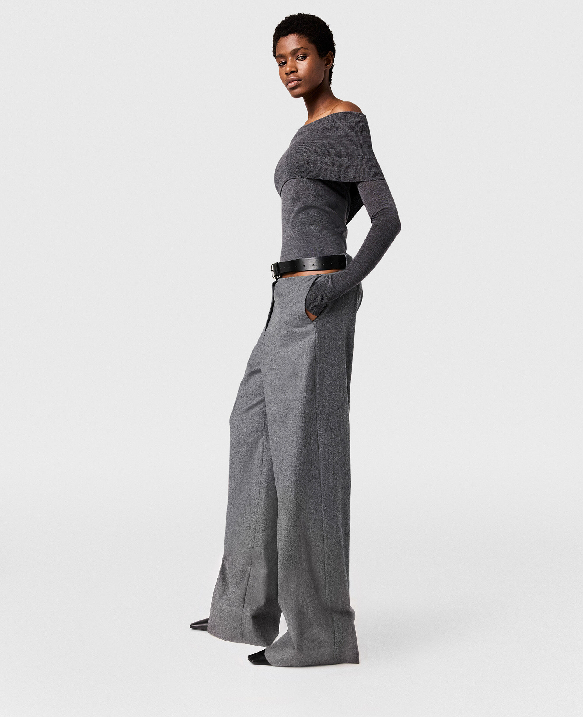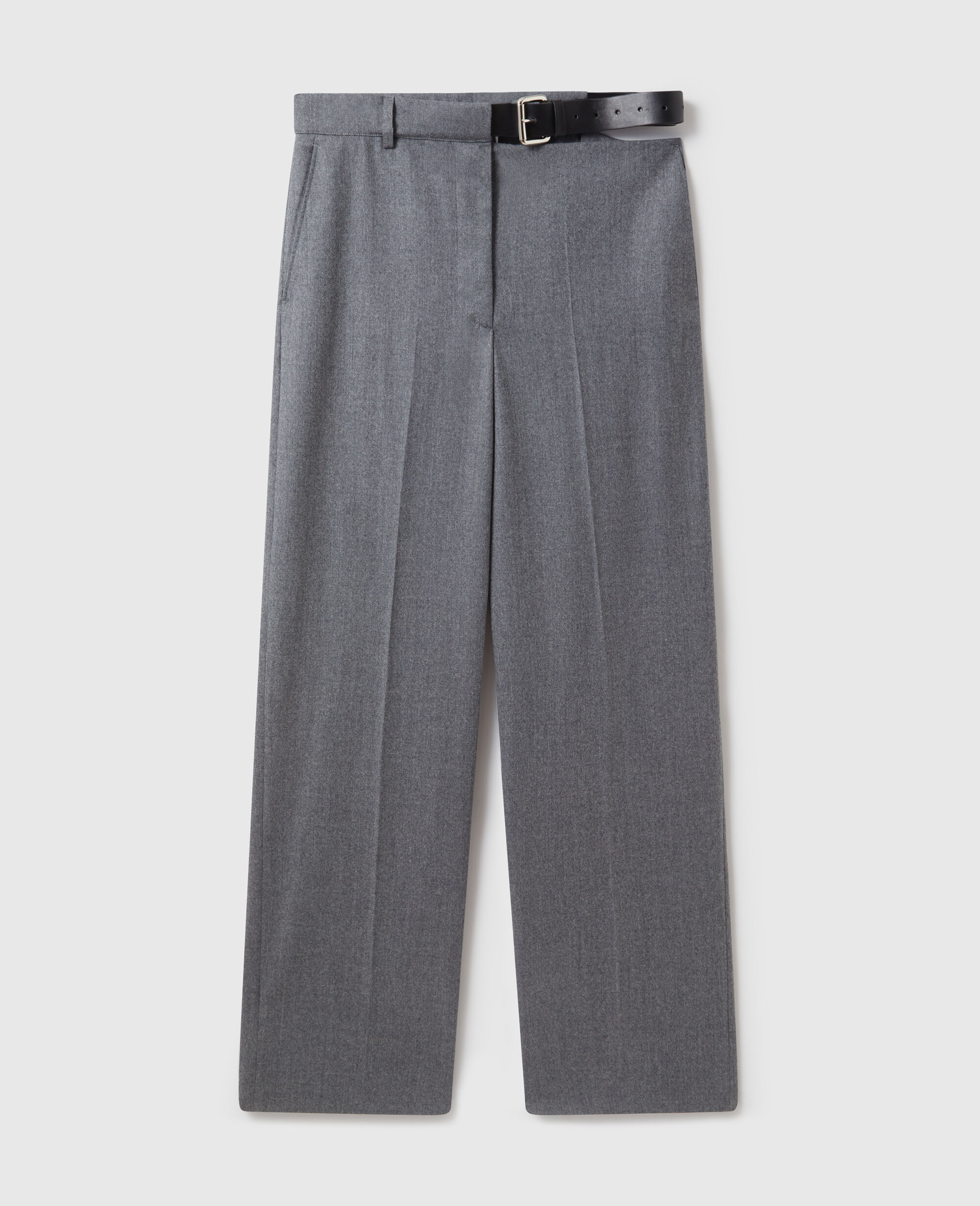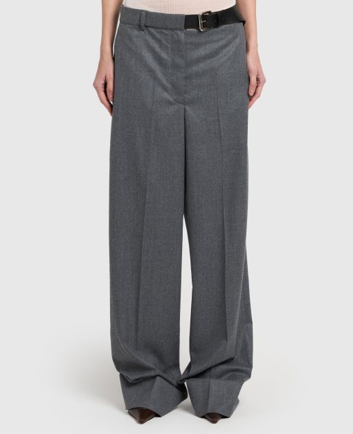 Savile Row tailoring is foundational to every Stella McCartney collection. For Fall 2025, these gray pants are immaculately constructed from fully traceable RWS certified wool and cut to a low-rise, straight-leg silhouette with a belt fastening by the hip. Pair them with the coordinating blazer.