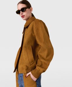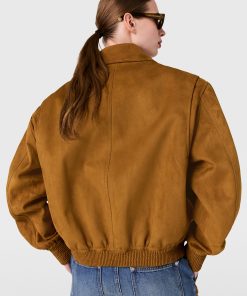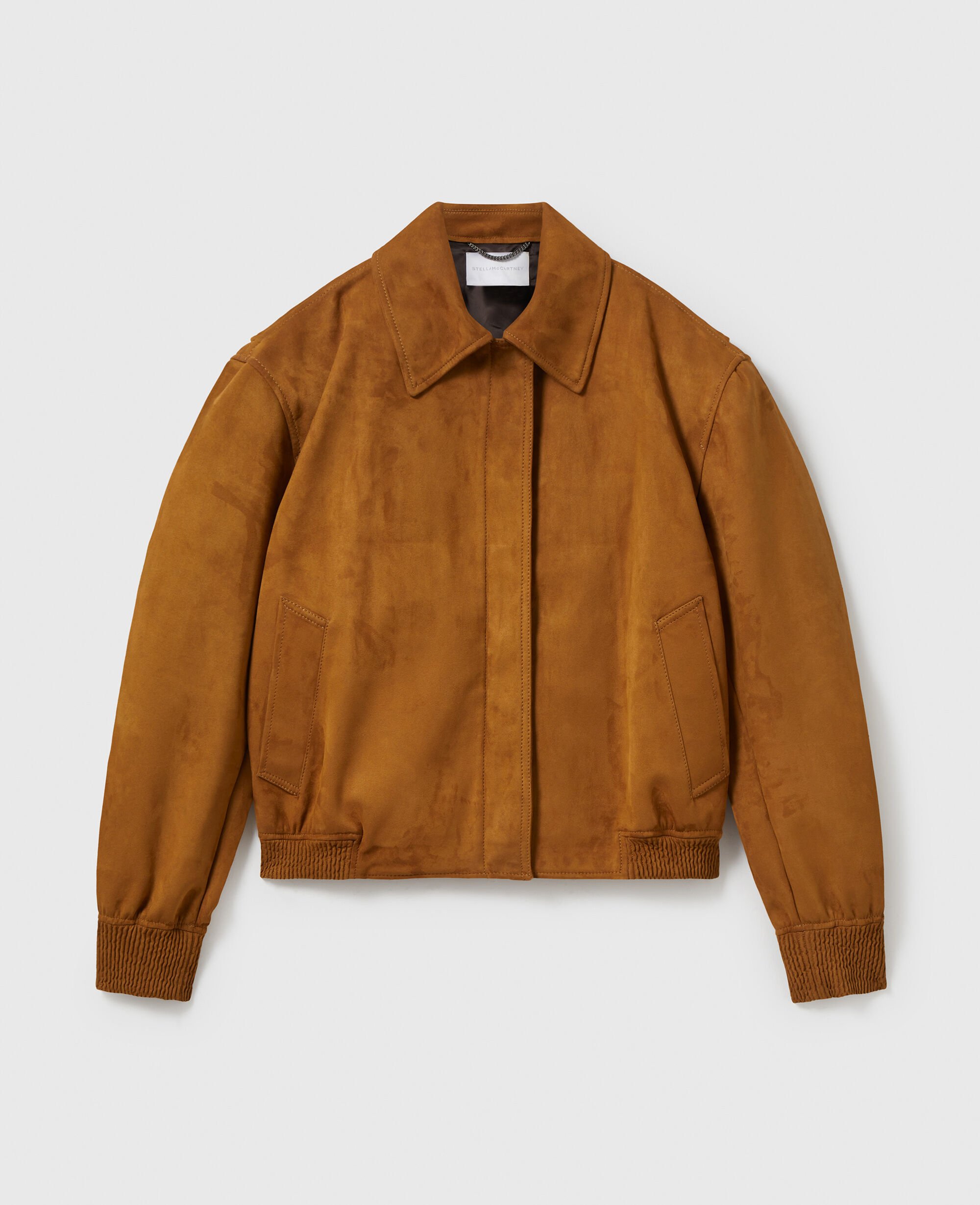Pioneering cruelty-free and vegan innovations, Stella McCartney crafts this bomber jacket from our sumptuously soft, animal-free suede alternative for Autumn 2025. Cut to an oversized silhouette, it’s topped with strong shoulders and an exaggerated pointed collar.